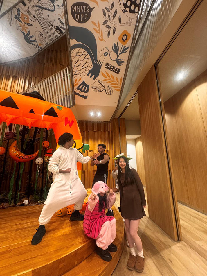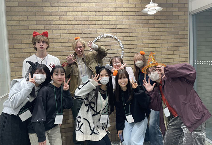This year's Halloween Pumpkin Hunt kicked off with a launch party on Tuesday, October 28, and ran for four days until Friday, October 31. The launch party drew so many participants that they couldn't all fit into the Language Lounge on the second floor of the Communication Plaza. Everyone dressed up in Halloween costumes and had a wonderful time. This year, 95 participants from Nagoya University of Foreign Studies (including 46 international students) and 33 from Nagoya University of Arts and Sciences (including one international student) took part, totaling 128—surpassing last year's numbers. After the kickoff party, participants were immediately divided into 17 teams and began searching the campus for 20 pumpkins, each containing a mission.